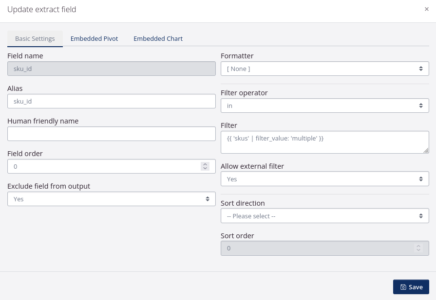 Once you have added the filter to the dashboard, simply copy the code from the filter and paste it into the relevant fields in the data extracts to which the filter is applied.