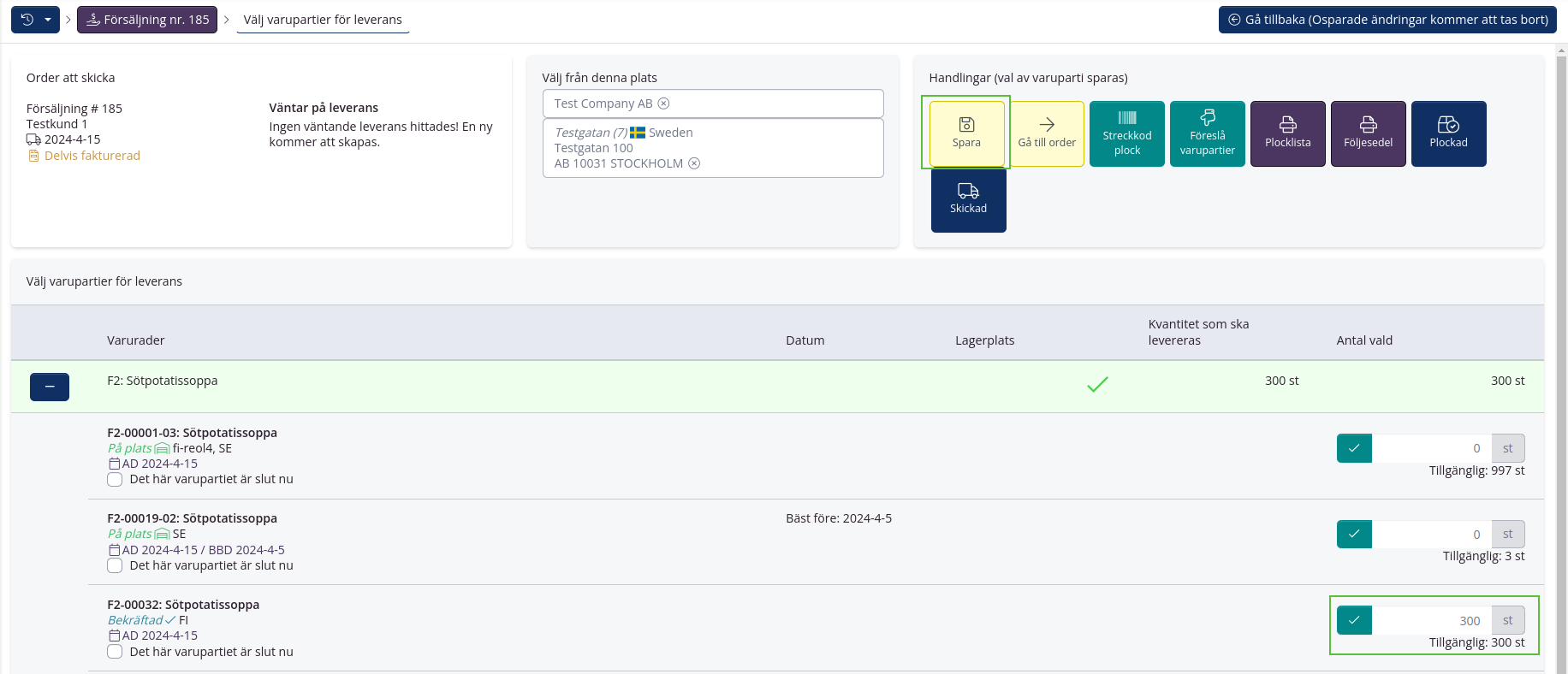 - När alla ändringar i ordern är gjorda klickar du på Skapa +/- faktura.